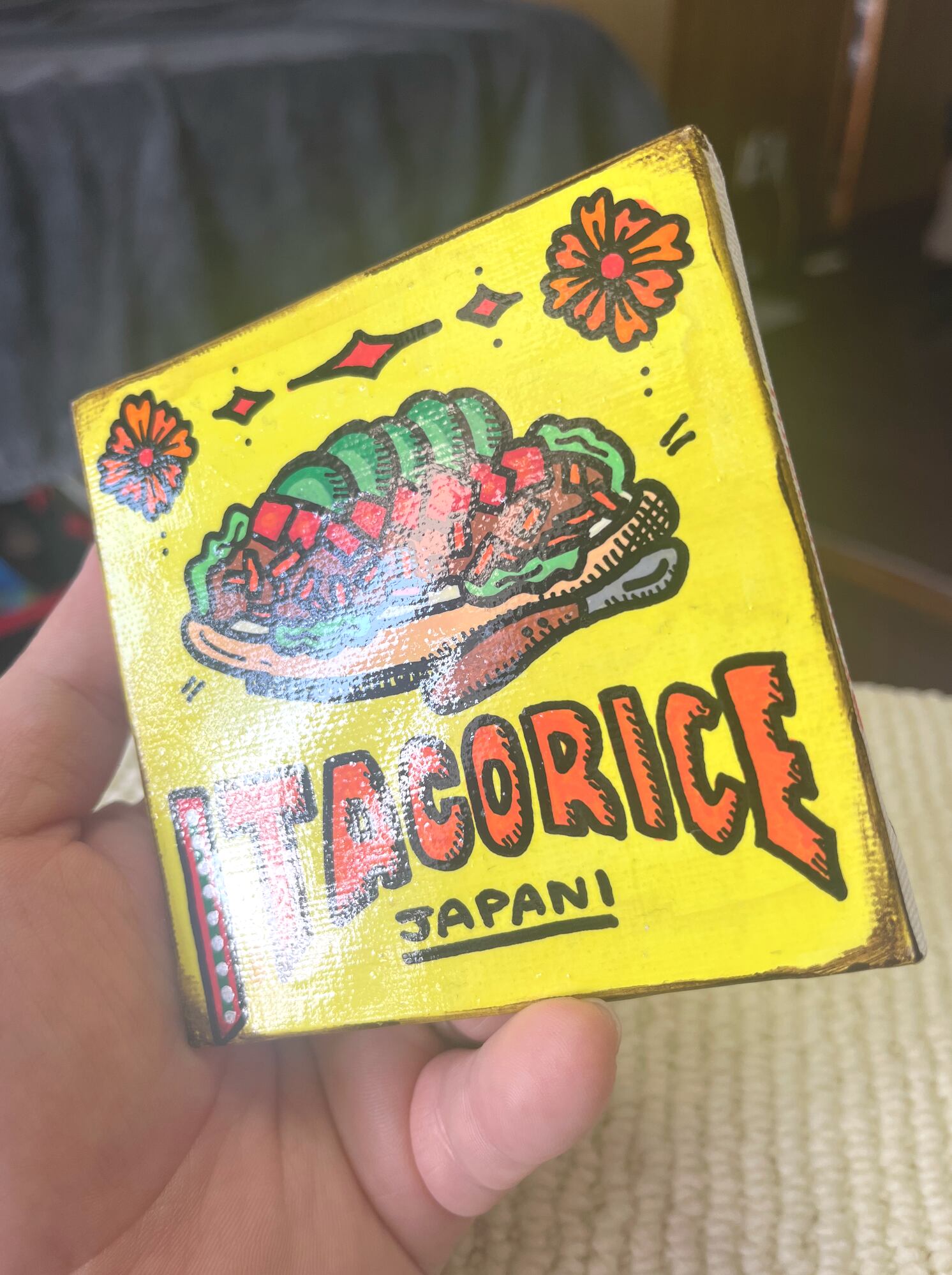 ※絵の具にアクリルとポスカを併用しました。一定の色と色との間でひび割れが起きました。ニスで固定しましたので、絵の具の脱着の心配はいりません。ひび割れは自然な造形で、それでいて美しく感じる事ができます。ご納得の上でご購入をお願いできればと思います。