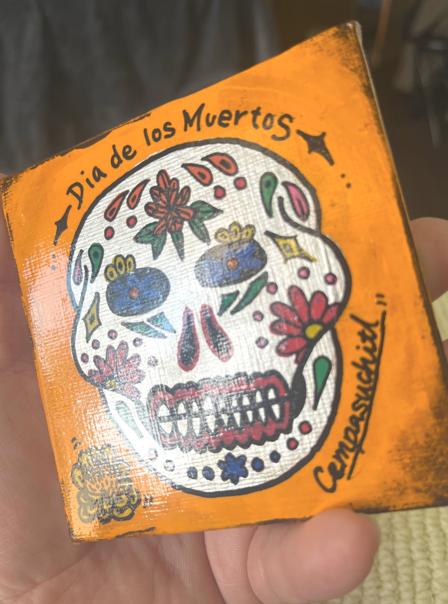 絵画:ディア・デ・ロス・ムエルトス・オレンジ背景(死者の日・オールド化)#1:Dia de los Muertos #1
