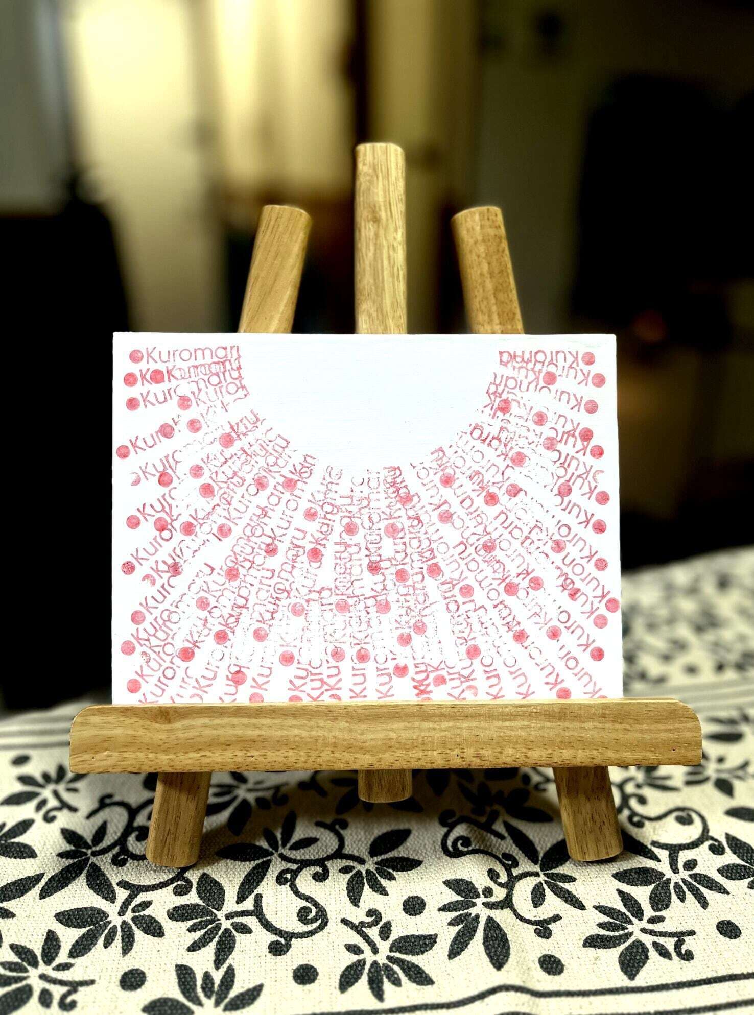 くろまるの作品は所属団体アーティストの中から4点が選抜されました。ドアレスアートの展示会では作品のタイトルは付きません。これは障害者配慮の一環でもあり、かつ閲覧者にイメージを委ねている意味もあります。所謂、絵画自体が持つメッセージ性を等団体は優先しています。抜擢されたくろまるの作品4点は、現在くろまるショップで購入する事はできません。価格は非公開としており展示会場にて担当スタッフにご商談いただけますと幸いです。