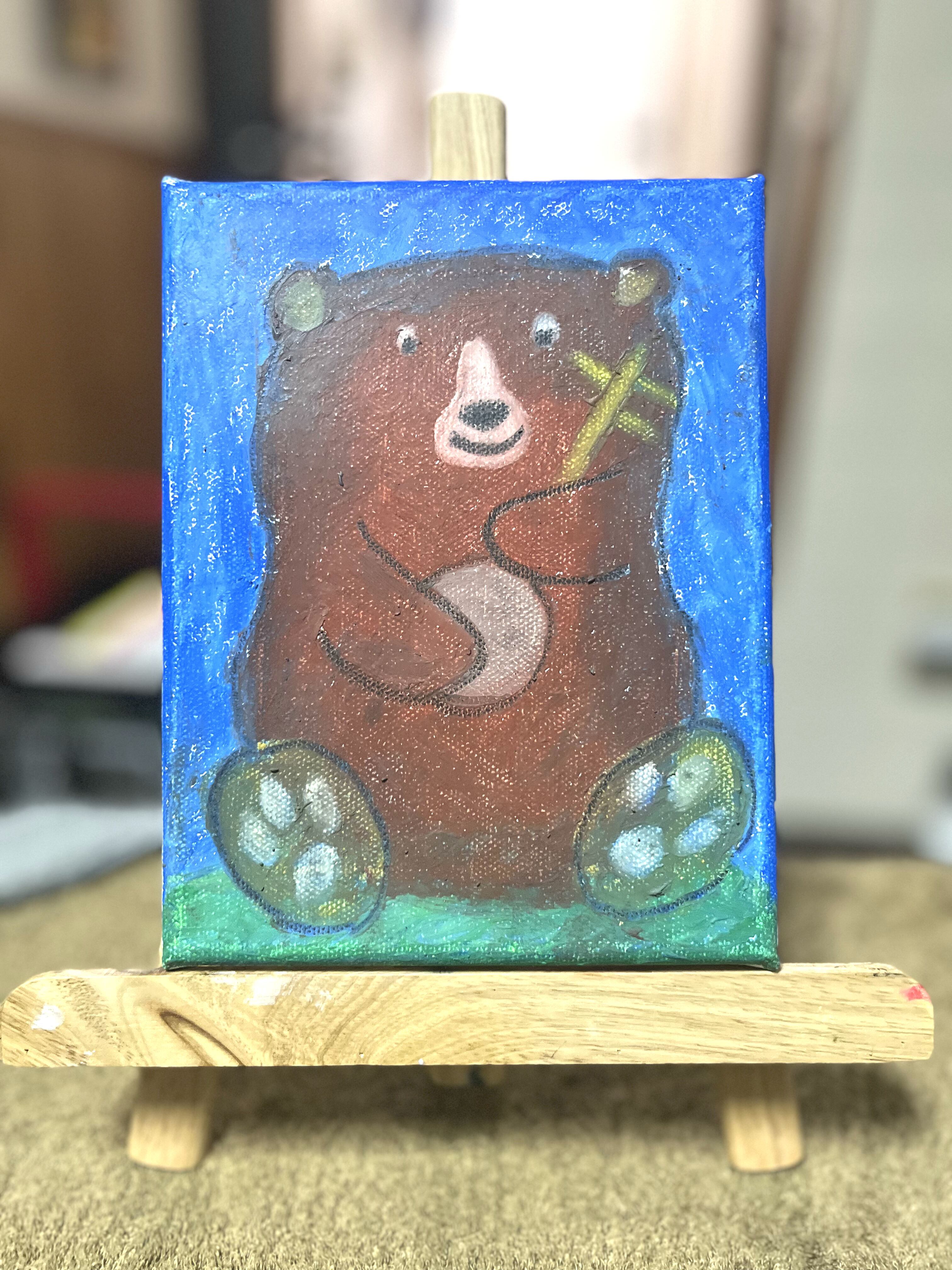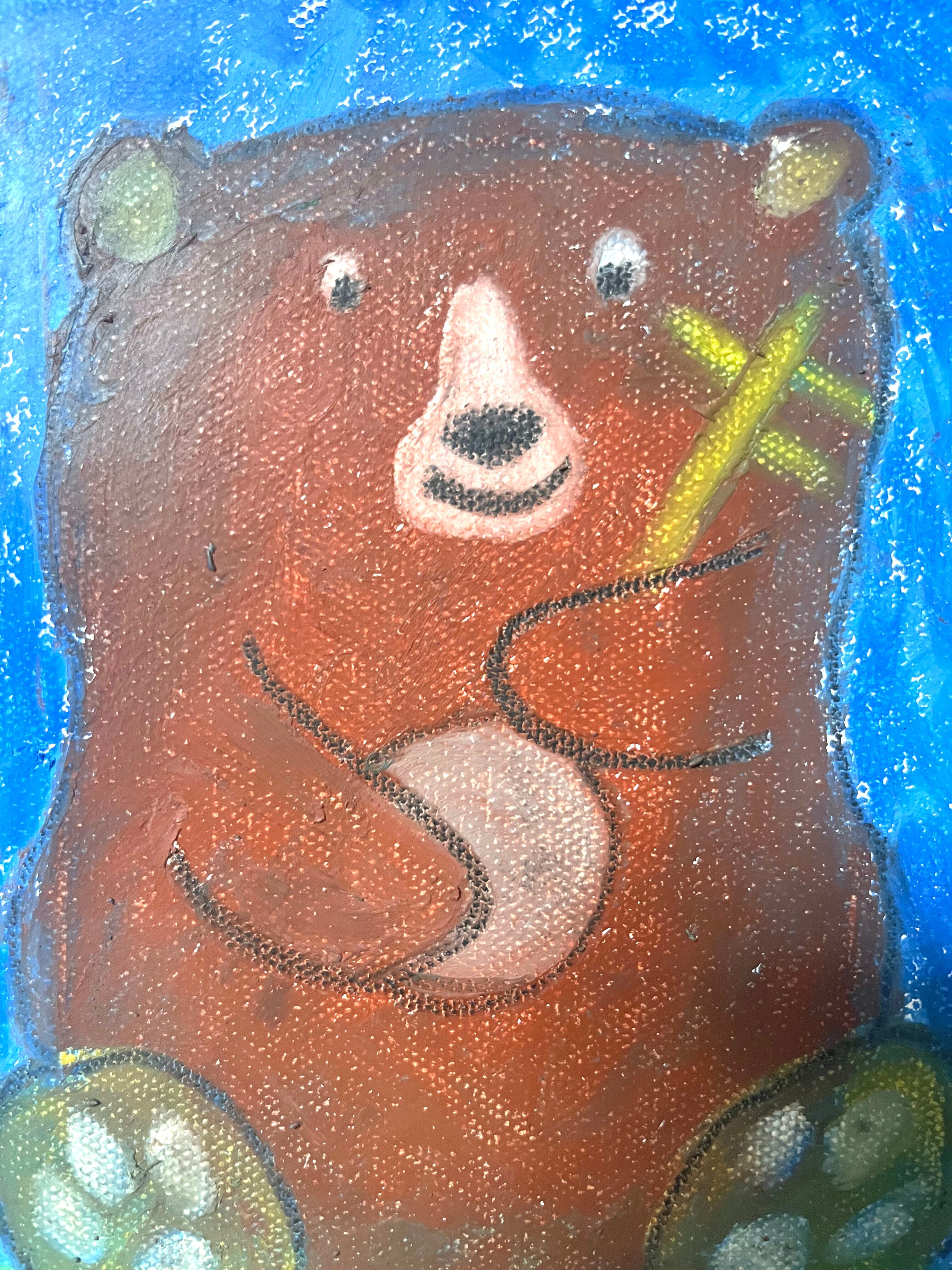 絵画:カンカラ三線くま(クレパス・ブルー): Kankara Sanshin Bear (Pastel blue)