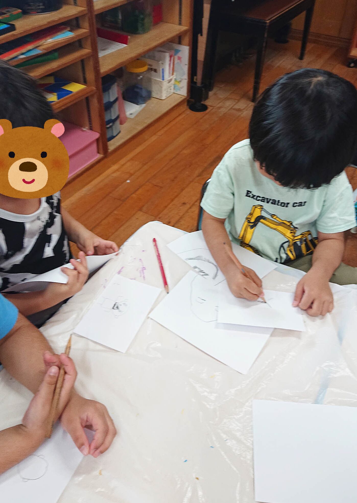 いつもお絵描きしない男児が喜んでお絵描きしていました。