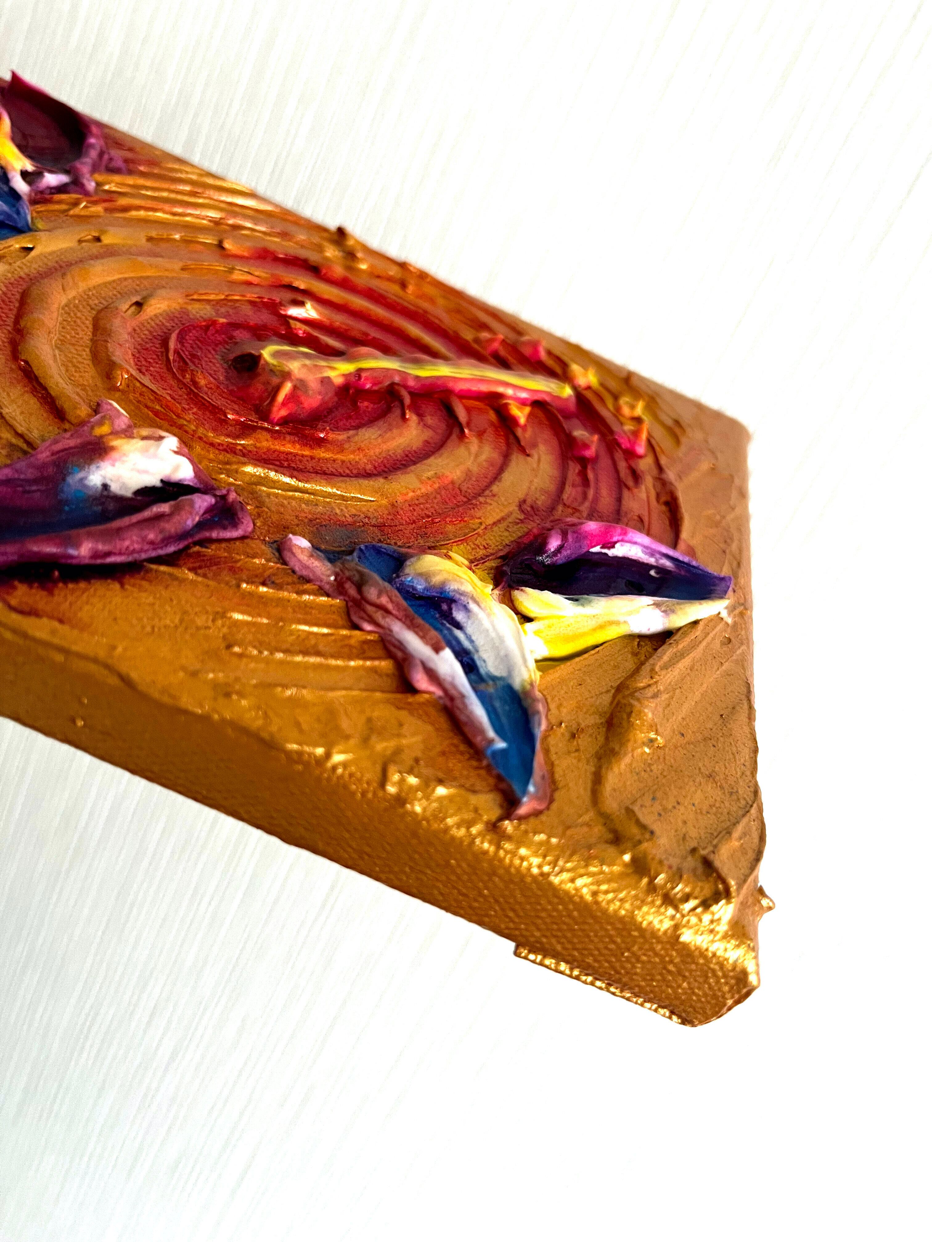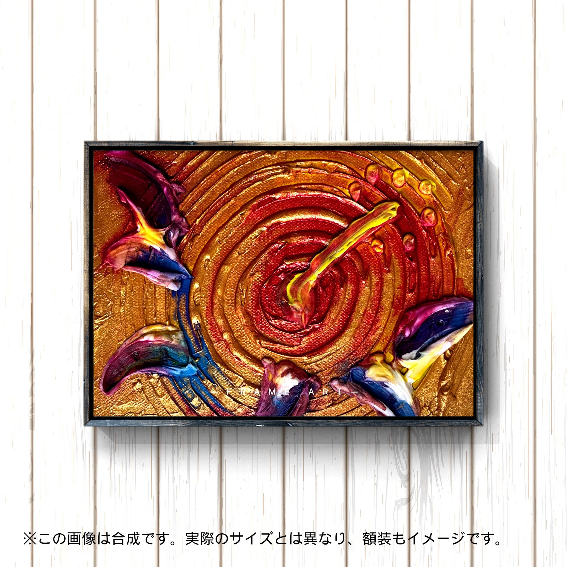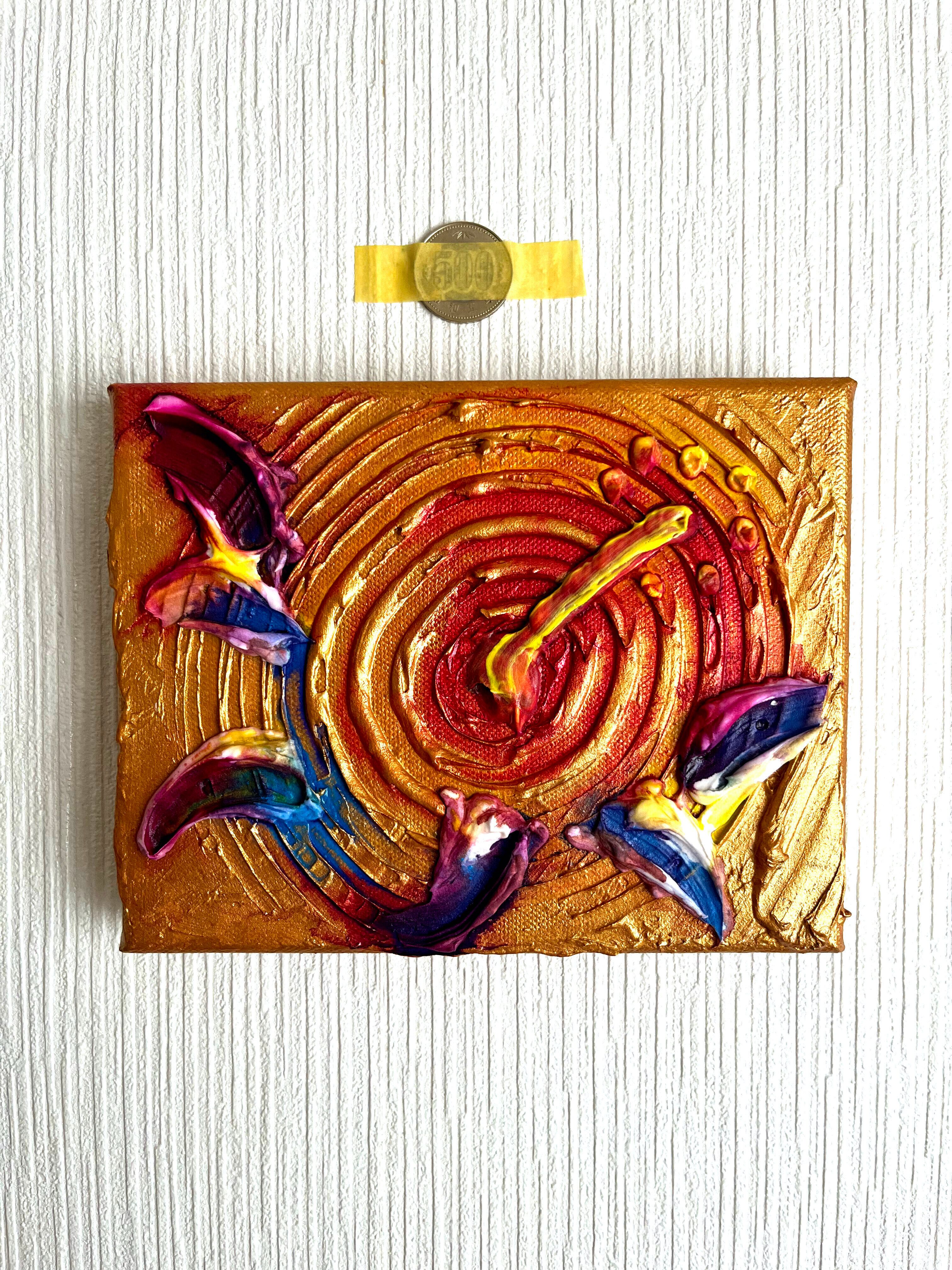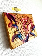 南国に大きく花開く、花の王、ラフレシアの如く咲いたハイビスカスです。葉は様々なアクリルリキッド色素が混じりあり虹色に変化しています。まさしくトロピカルの名に恥じない逸品です。