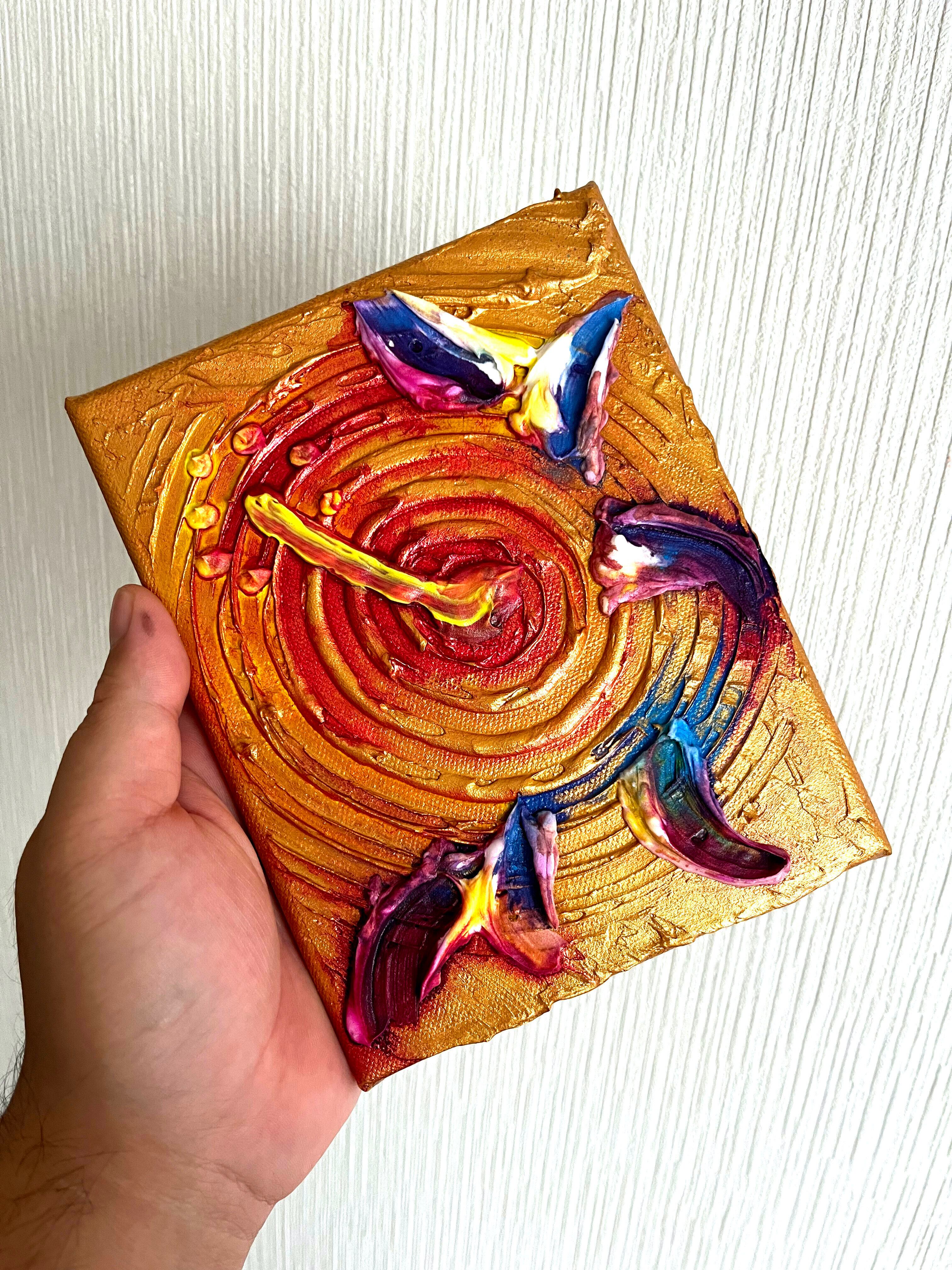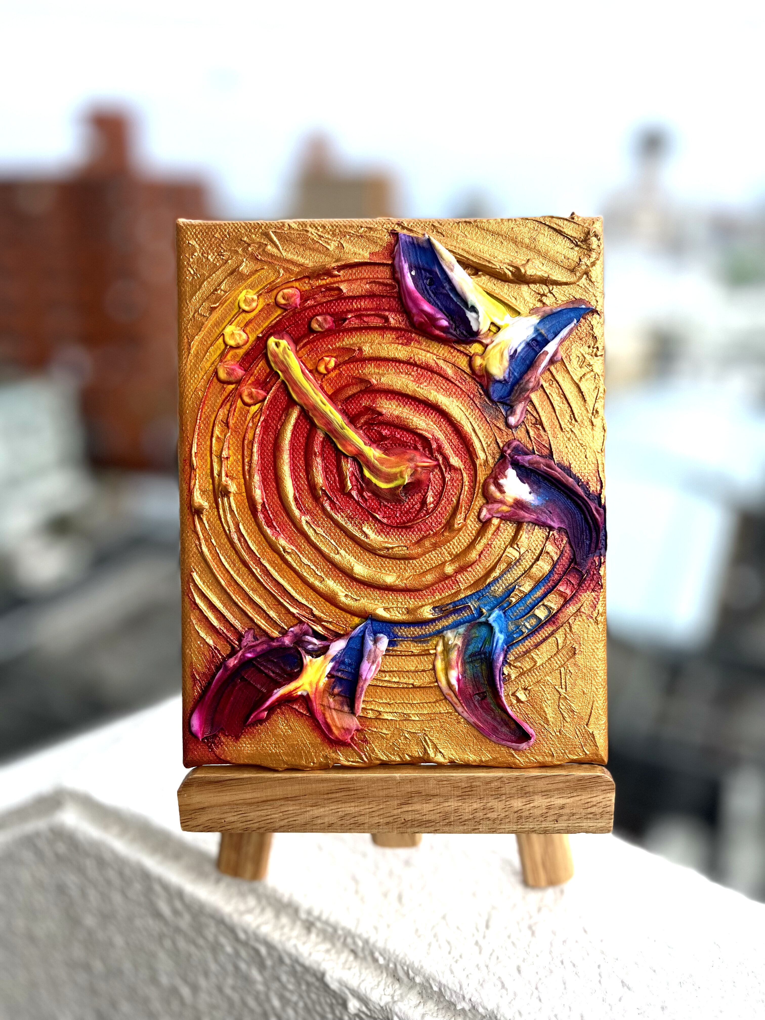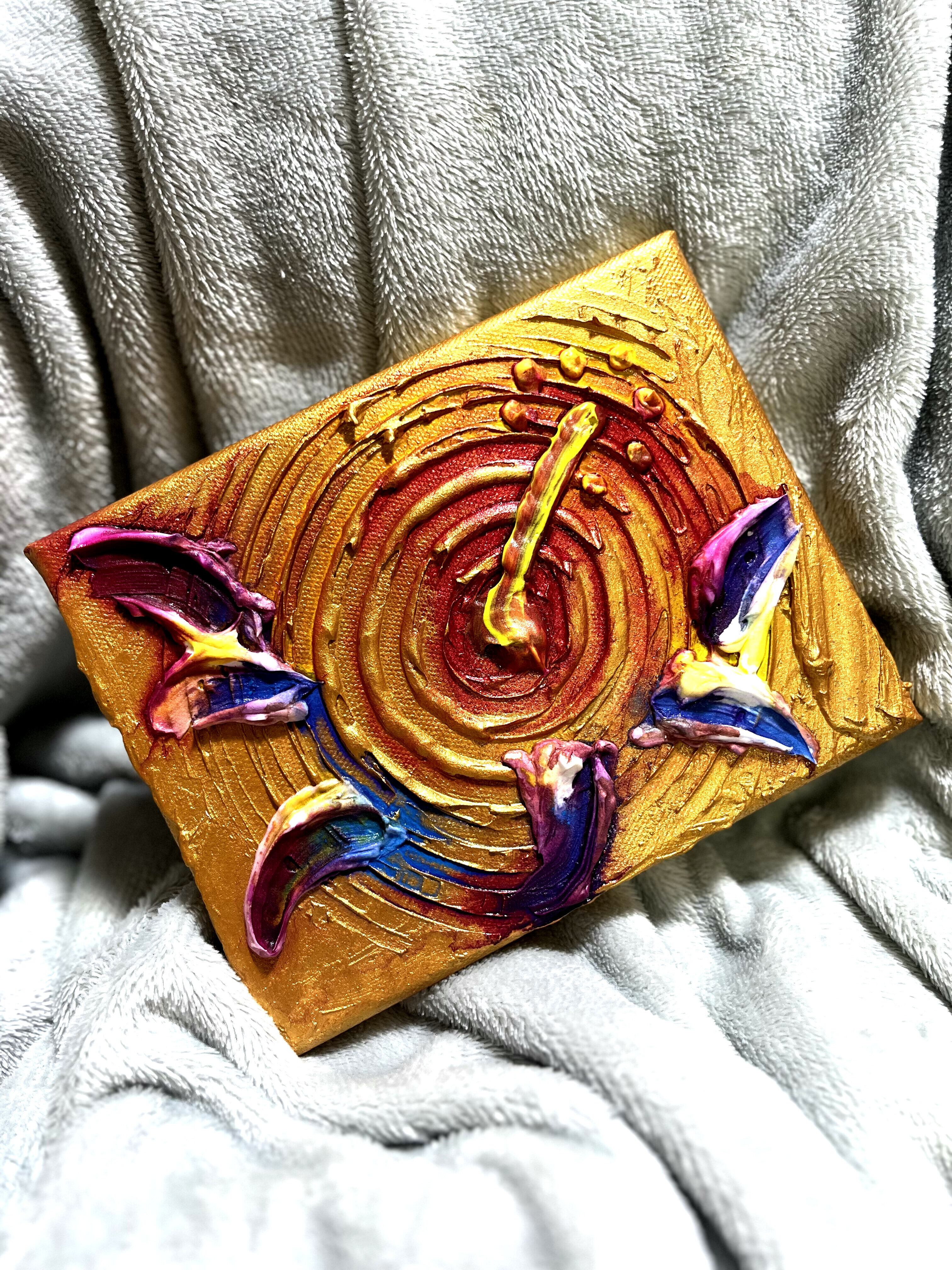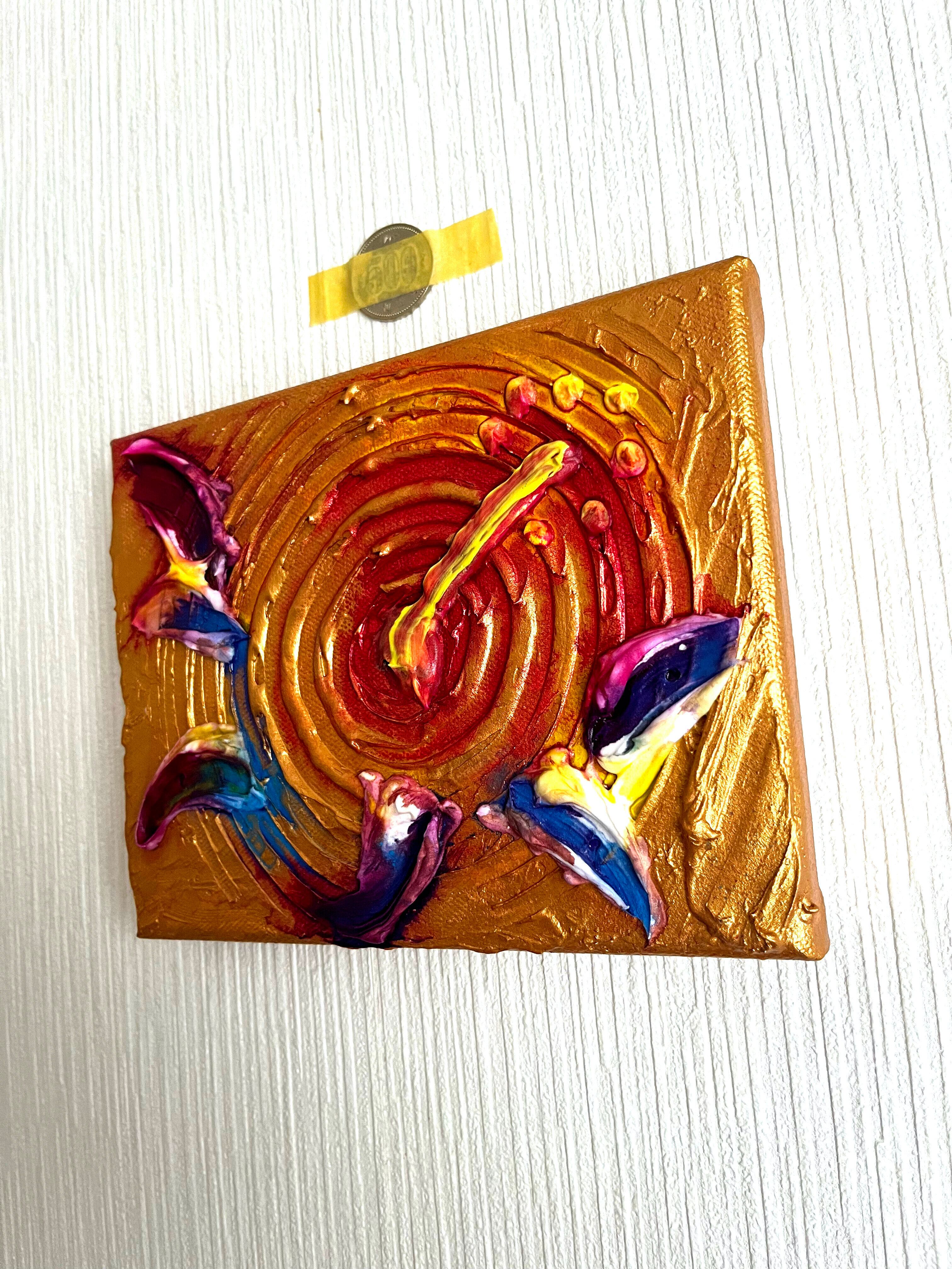 南国に大きく花開く、花の王、ラフレシアの如く咲いたハイビスカスです。葉は様々なアクリルリキッド色素が混じりあり虹色に変化しています。まさしくトロピカルの名に恥じない逸品です。