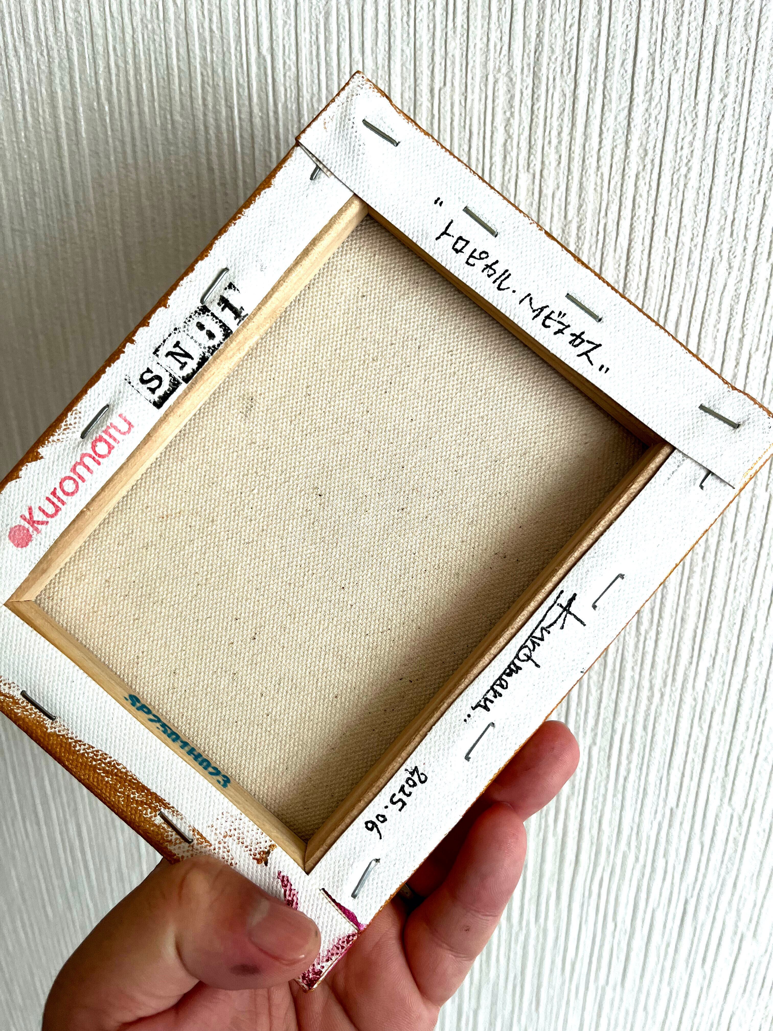 ニス:ホルベインつや出しグロスバーニッシュスプレー1回、ターナーU35つや出しUVニス2回(ブリキレベルのテカリ)