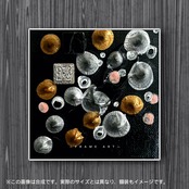 夜桜シリーズに設置しているストーンの数は全て偶数(2,4,6)。これは「割れる」を意味し、執着から解放するための「念」を絵画に込めています。昼の桜とは表裏一体の存在です。