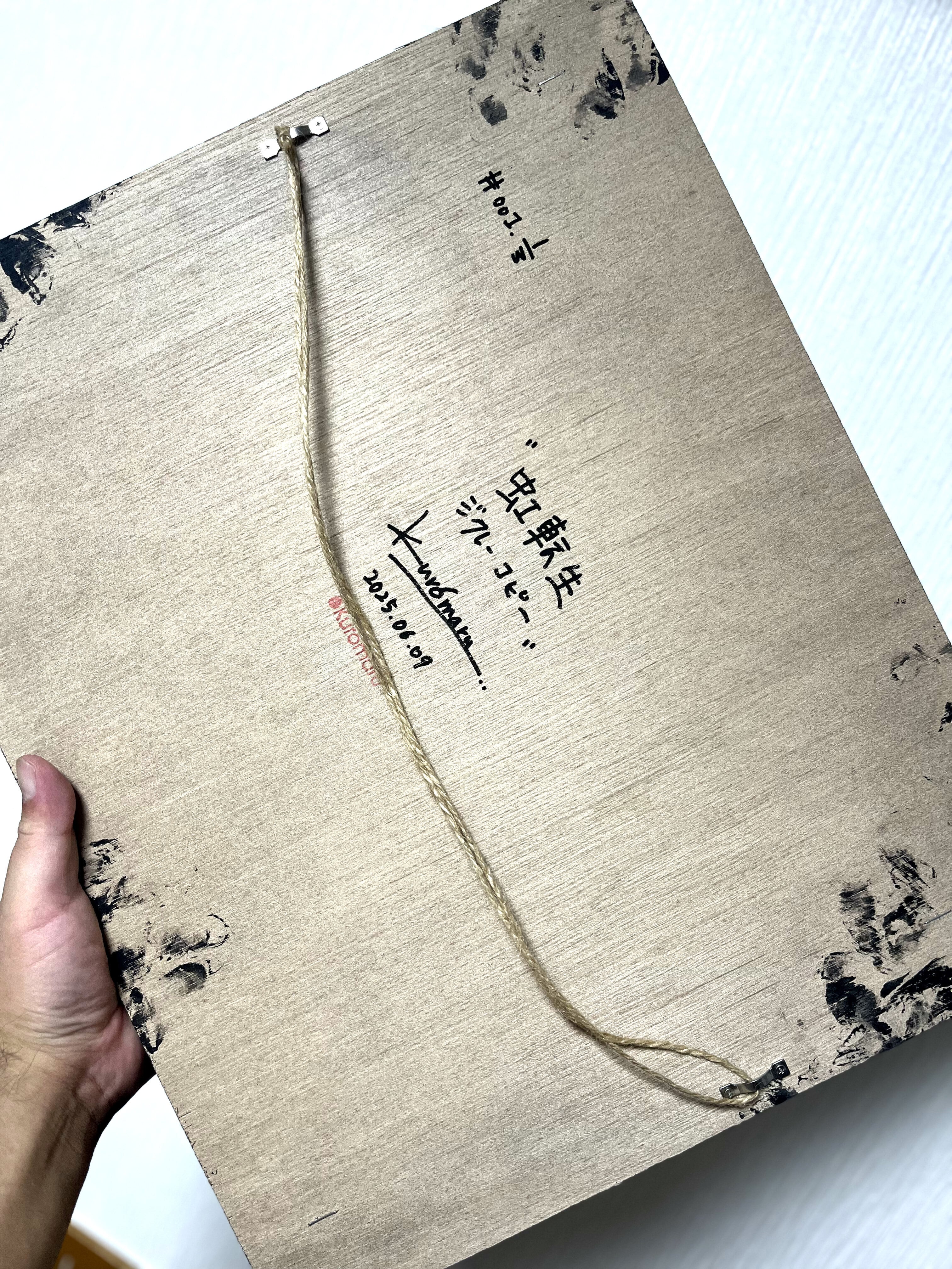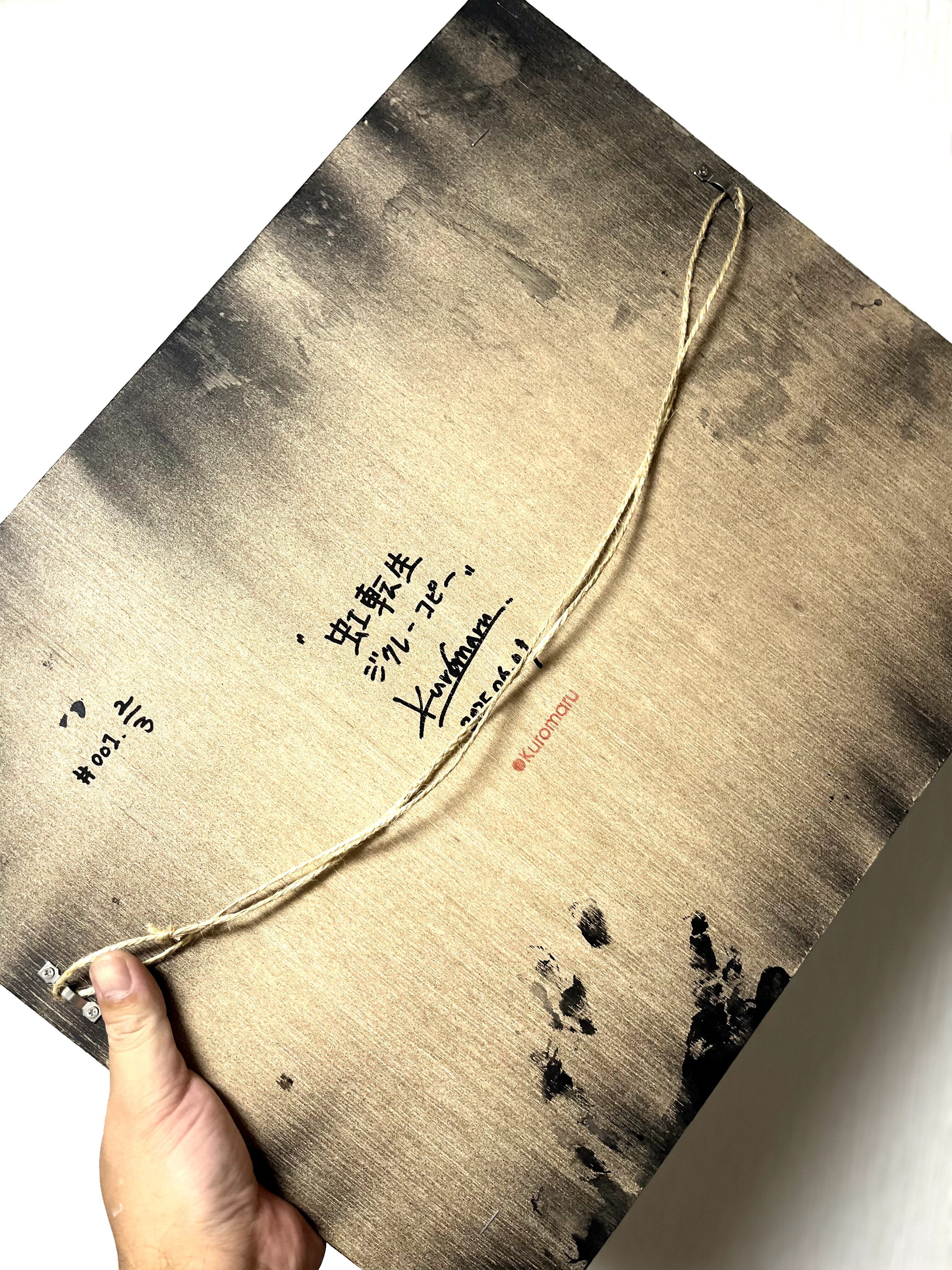 ジークレー印刷とは、デジタルデータを高品質なインクジェットプリンターで、版を用いずに直接素材に吹き付けて印刷する技法です。フランス語で「吹き付ける」という意味の「ジクレー (Giclée)」が語源で、高精細で広色域な表現が可能なため、美術作品の複製やデジタルアートの分野で広く用いられています。業社はACCEA那覇店を利用。