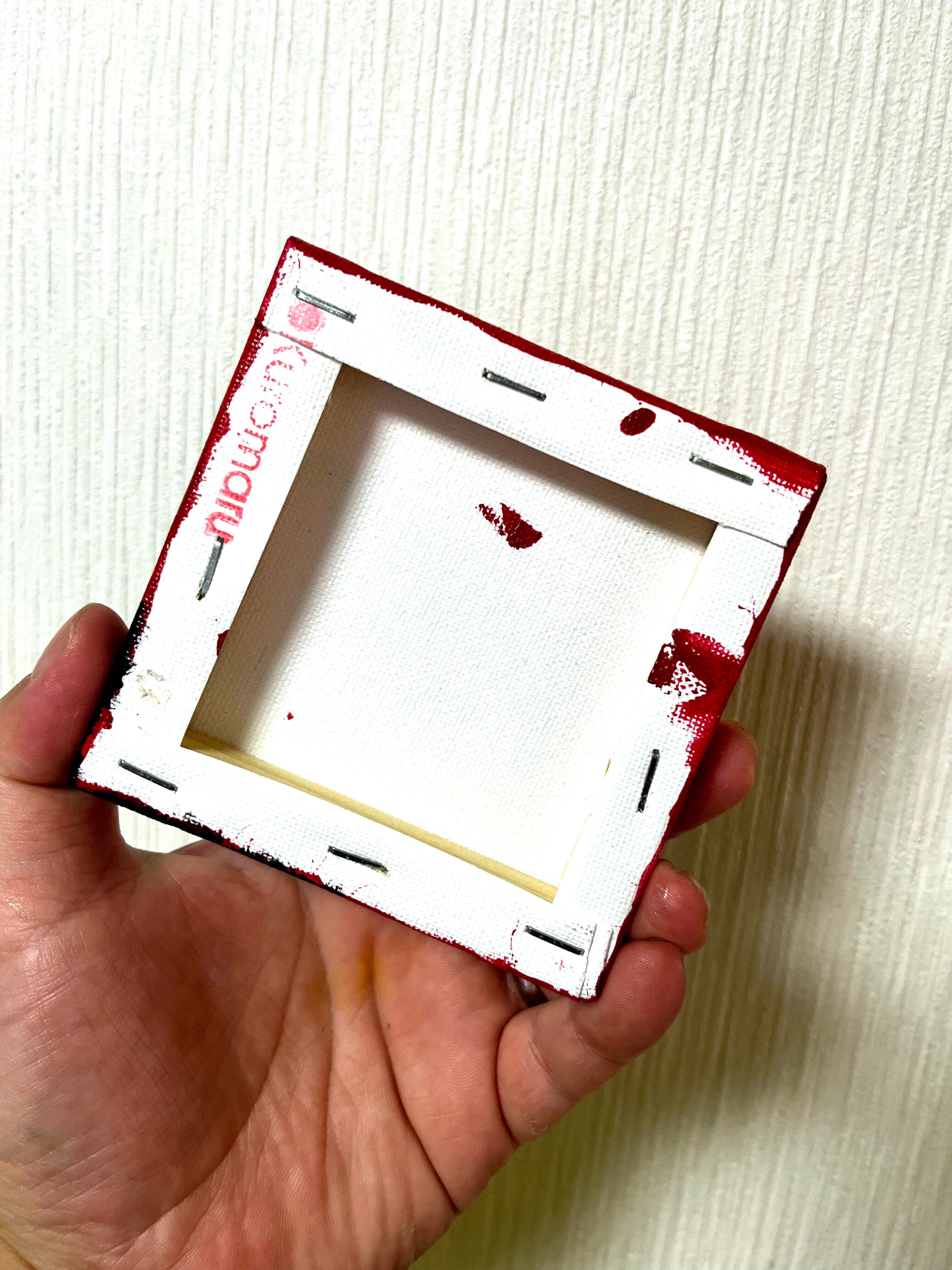 ニス:ホルベインつや出しグロスバーニッシュスプレー1回、リキテックス強つや出しニス3回(鏡面仕上げ)