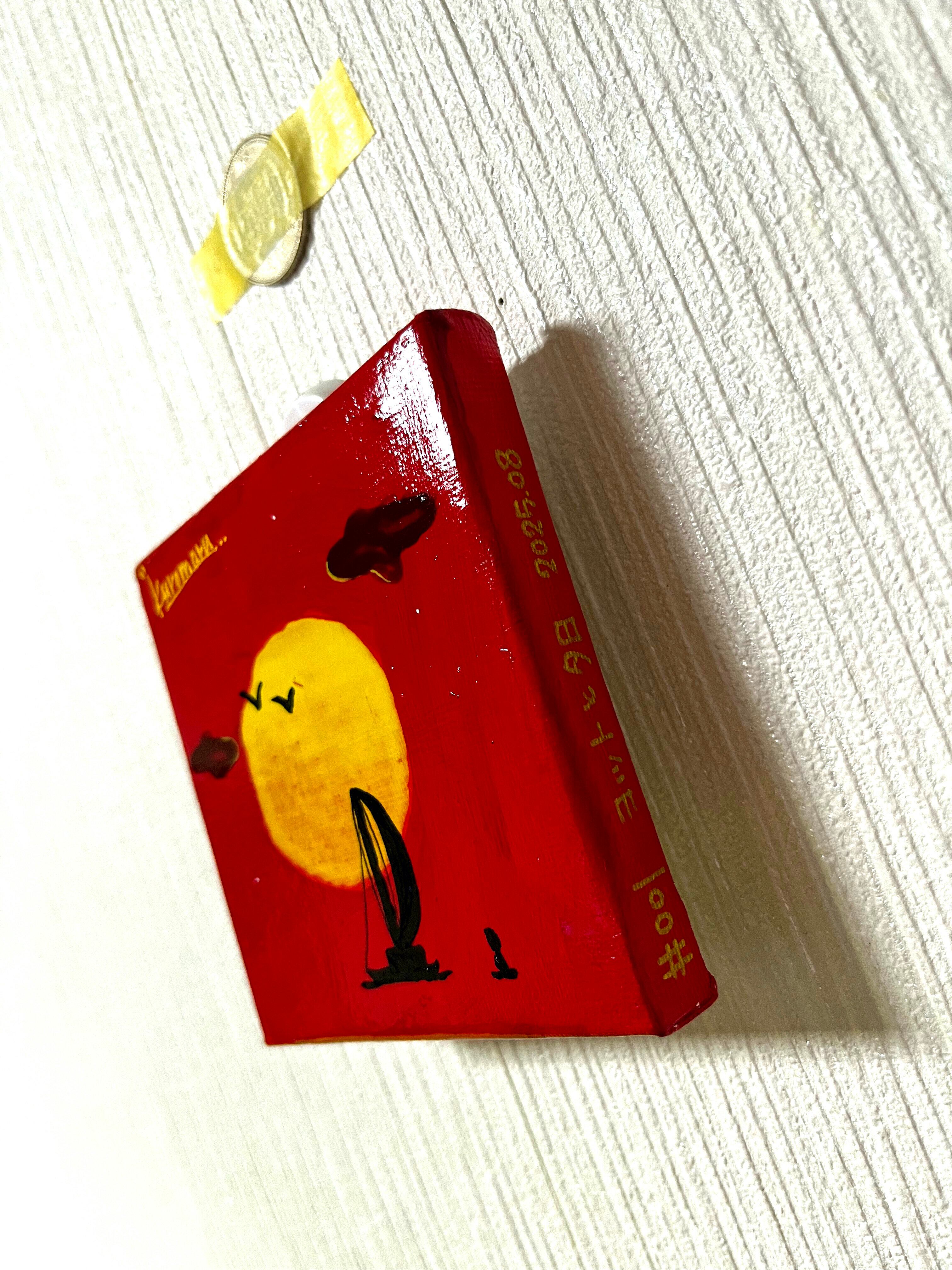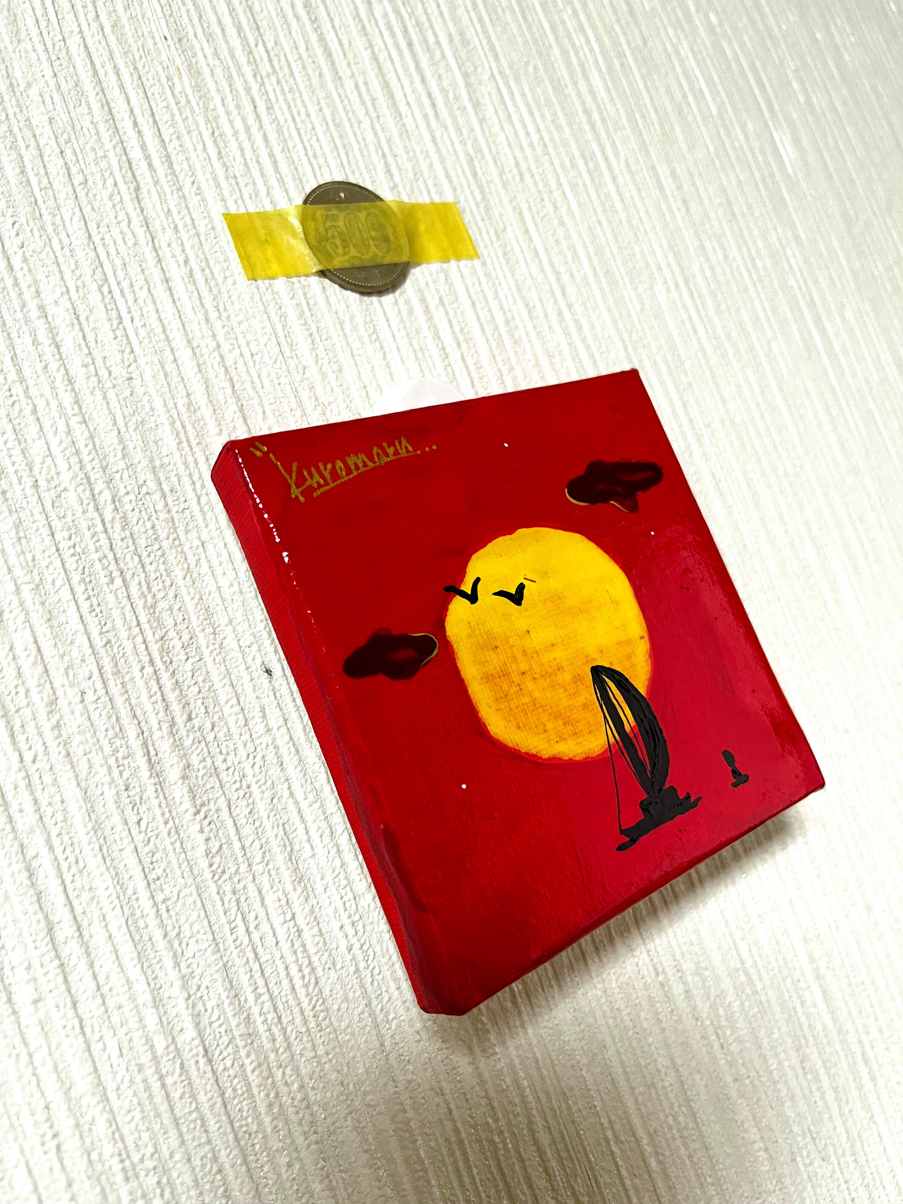 真っ赤に染まる空と黄色に輝く夕日を描きました。さらにヨットを重ね黄昏感を出しています。四重ニスより更なるメルティ感と、ニスによる絵の具の発色を最大限に引き出しています。あなたのお家にゆっくり寛げる優しい絵画を迎えませんか?