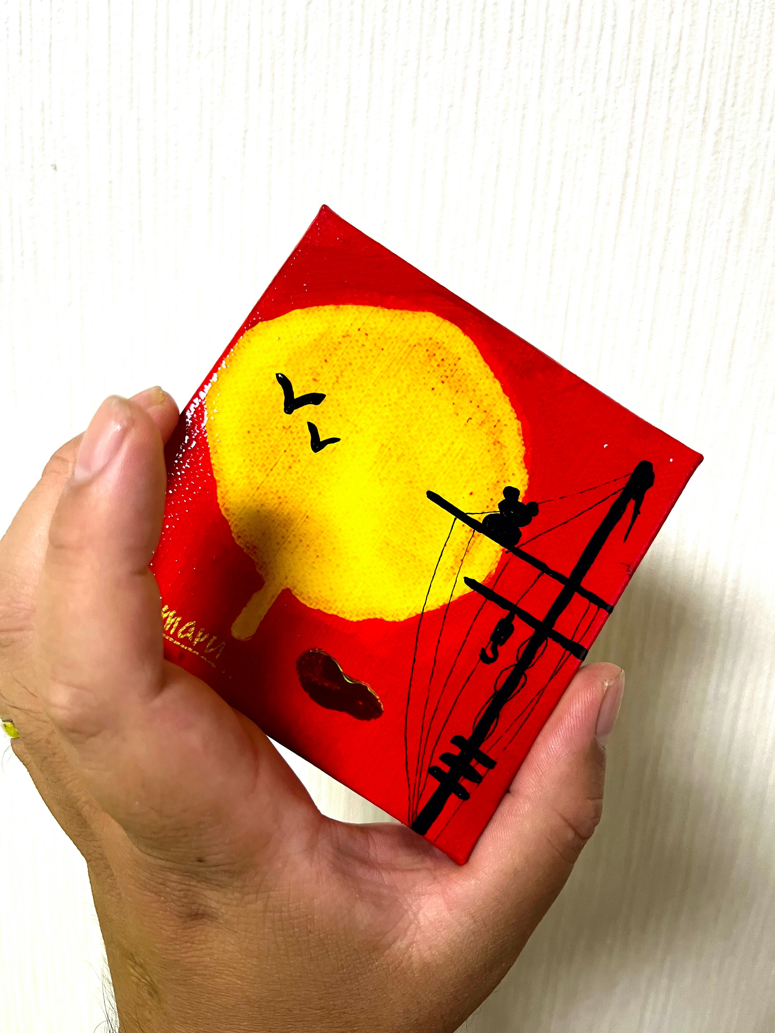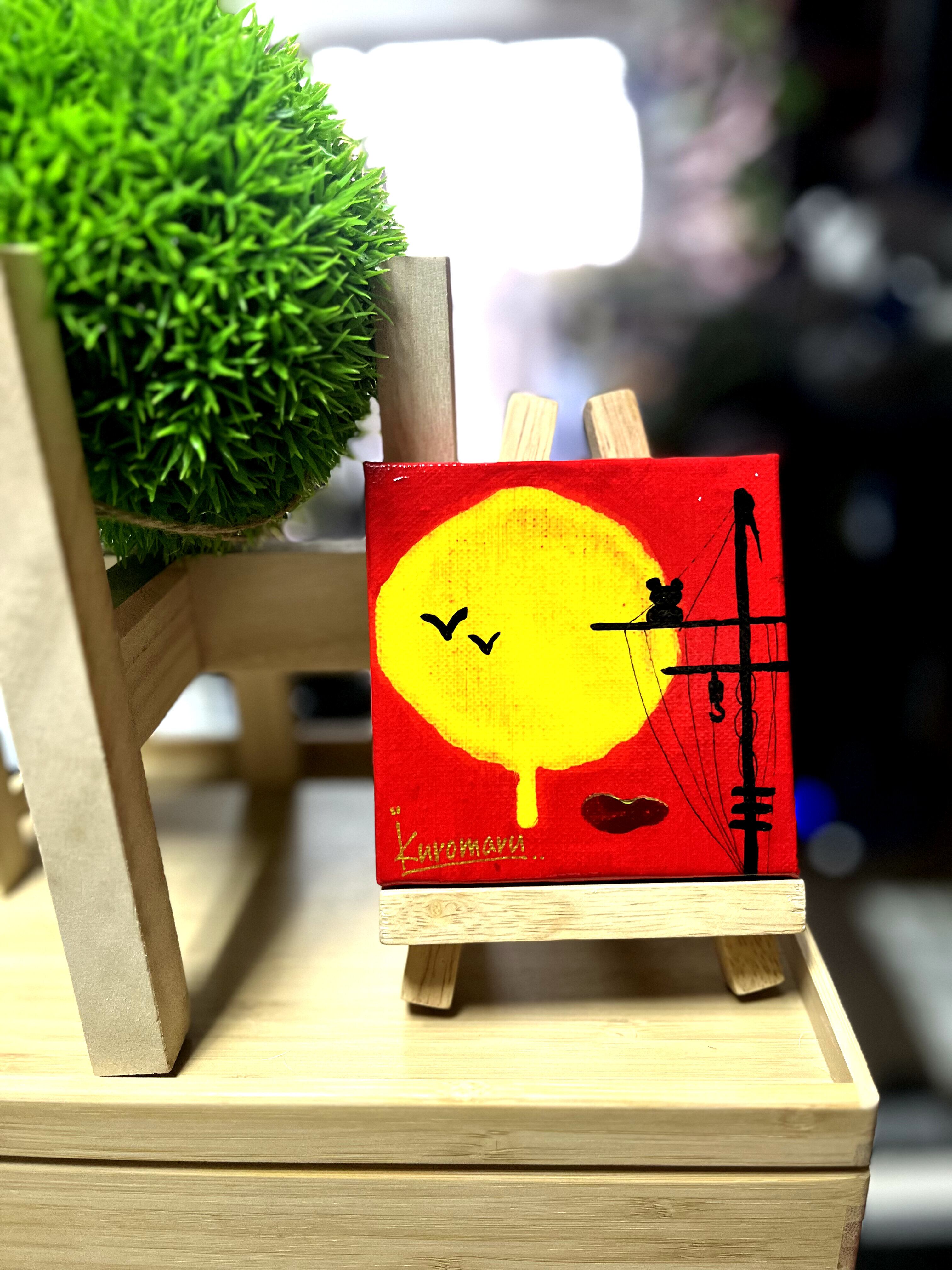 絵画:10cm角・ふねとトロける夕日:A boat and a melting sunset