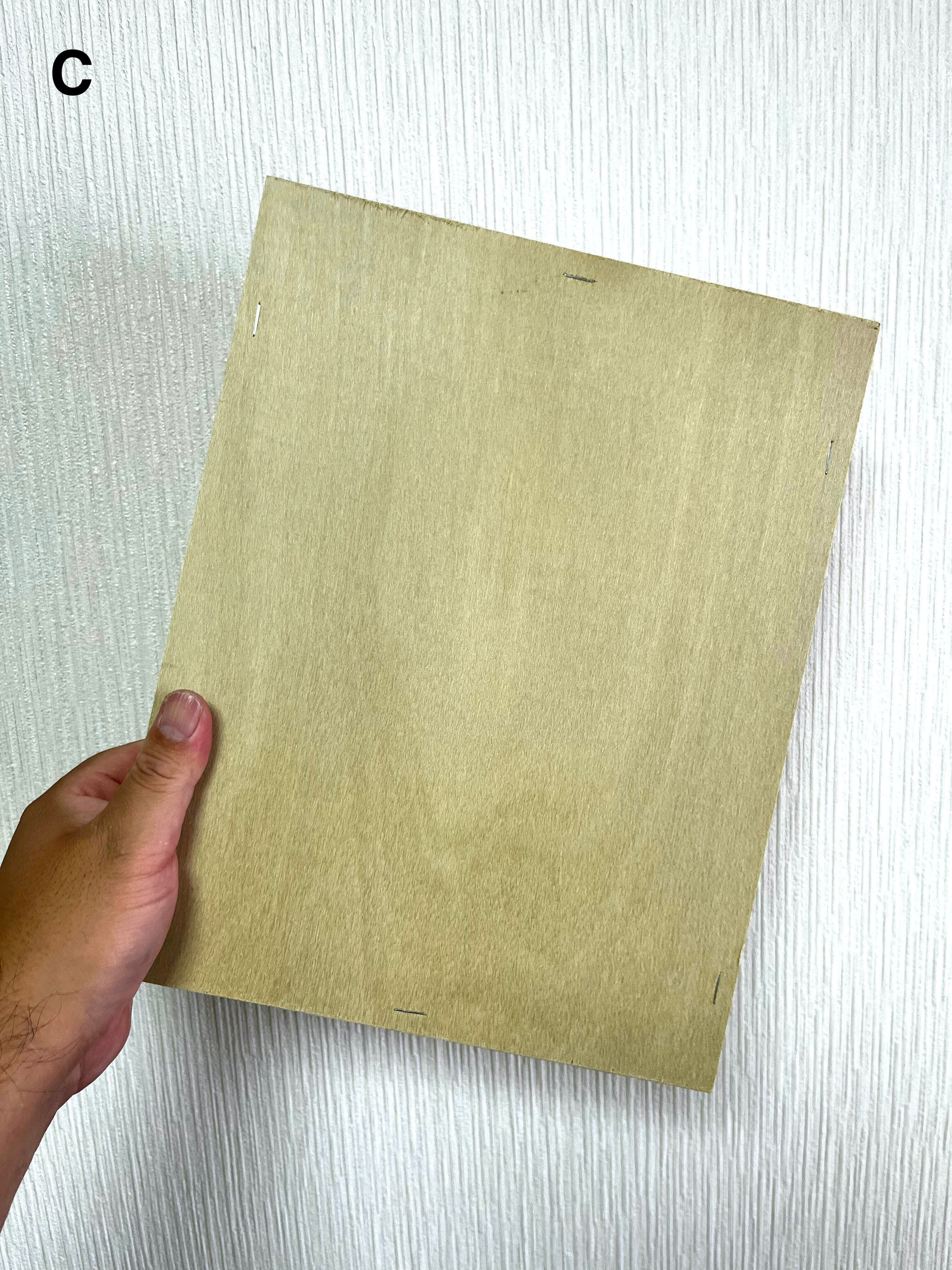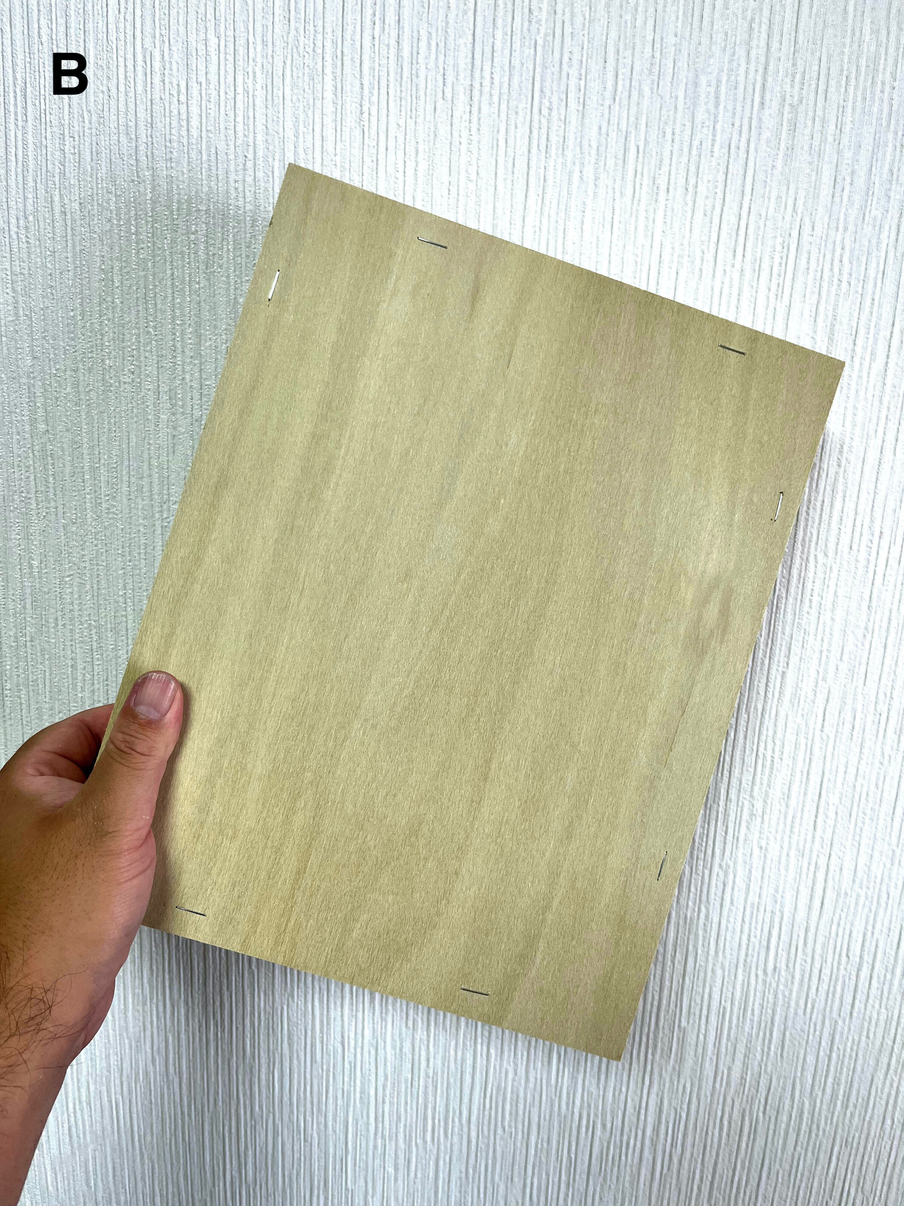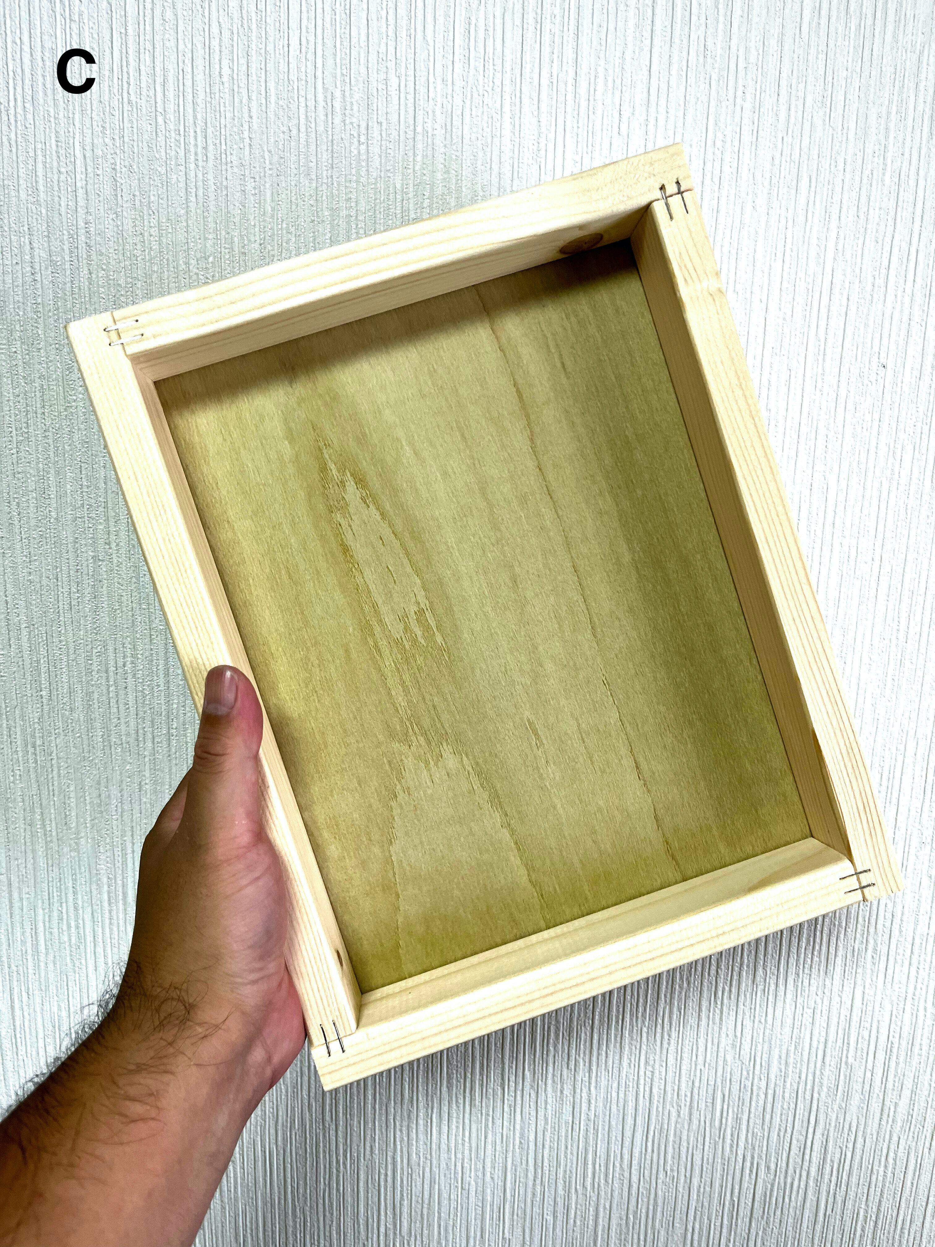 くろまる自身が作った、ホワイトウッドとベニヤ板を組み合わせた特性額装です。ホワイトウッドの品溢れる淡い色が「自然系」の絵画をより引き立てます。縦構図か横構図かでステンレス板吊器具の位置が変わりますので、ご注文までは設置しておりません。当店の絵画とご一緒に購入される場合は絵画と額をタッカーで固定させていただきます。なお、その後に額から取り外したい場合でも、ホッチキスを外す要領で容易に脱着可能です。