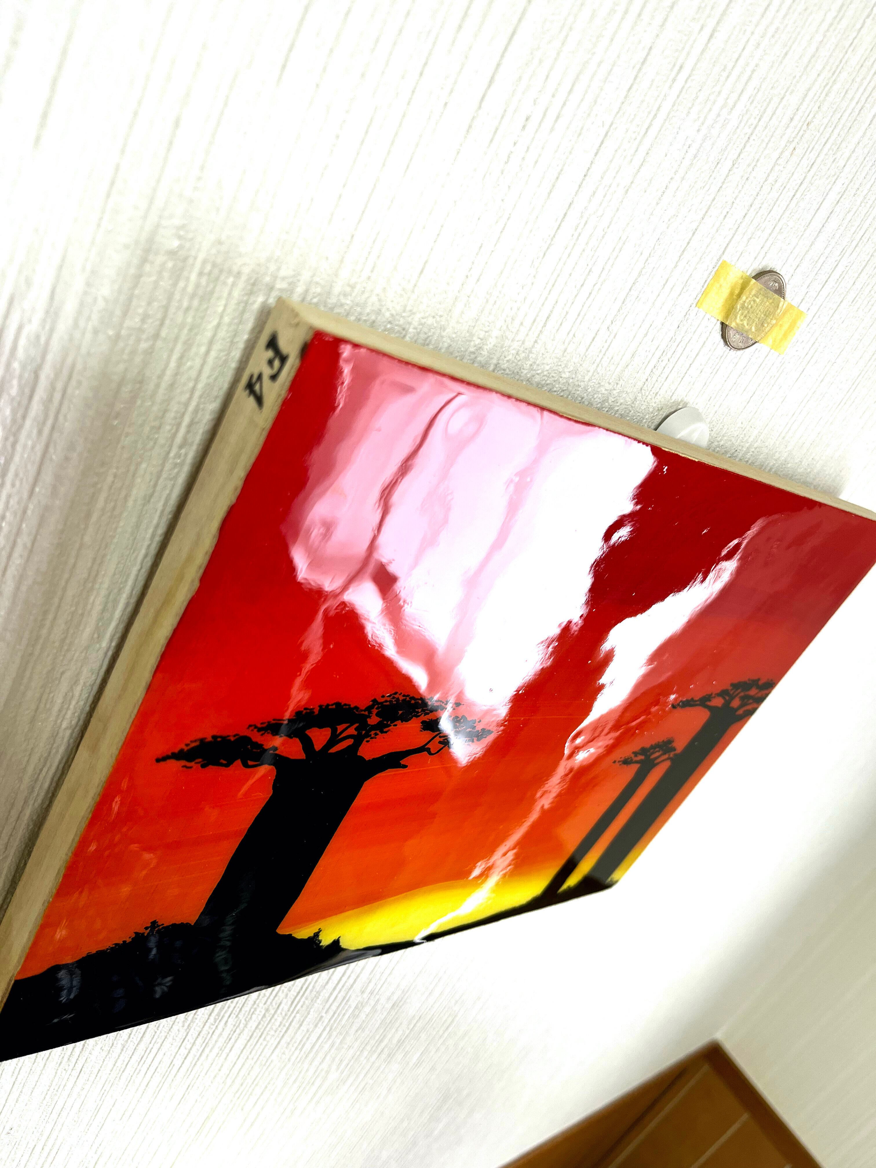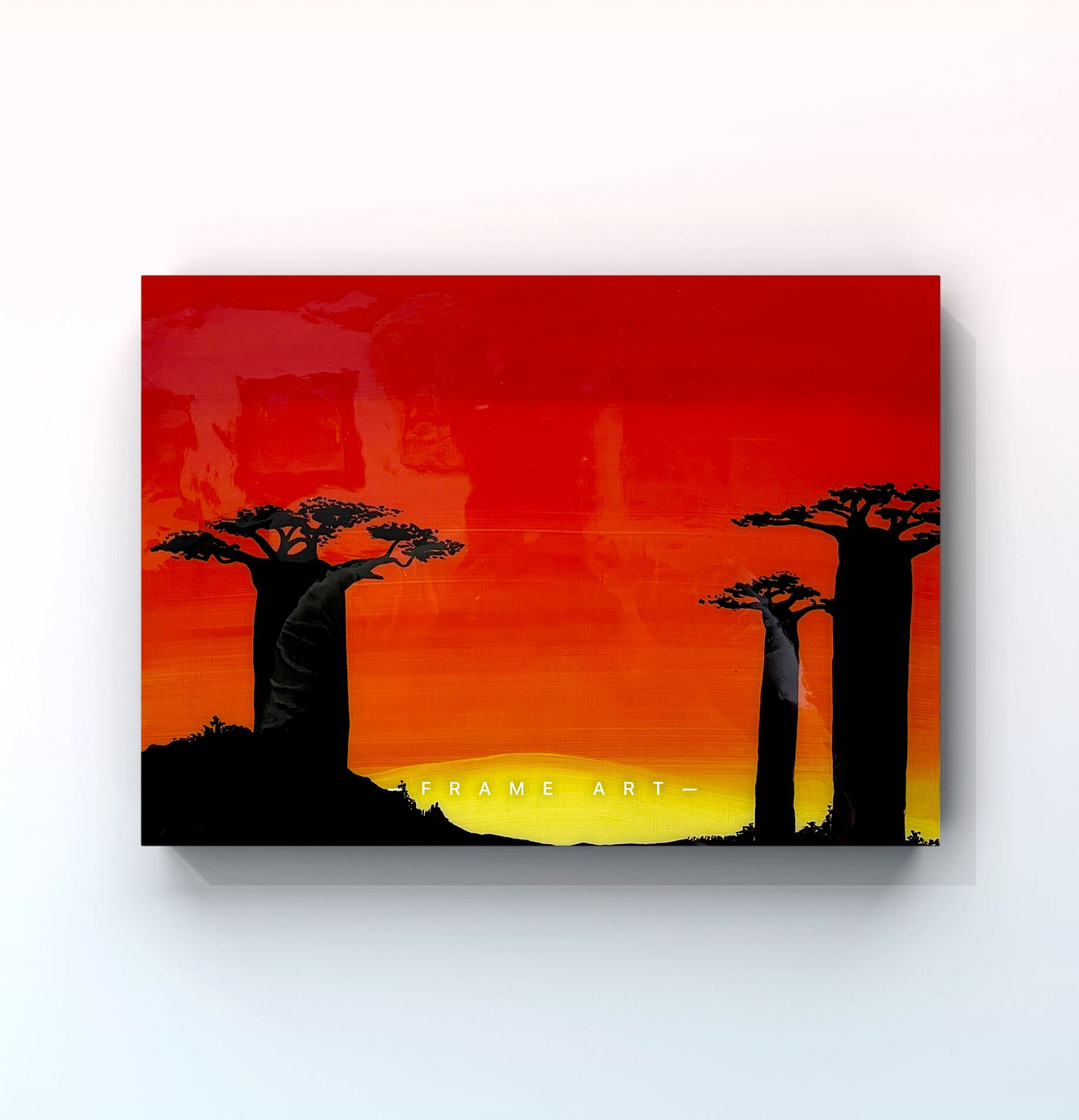 レジン絵画:バオバブの丘(自作額装付き):Baobab Hill