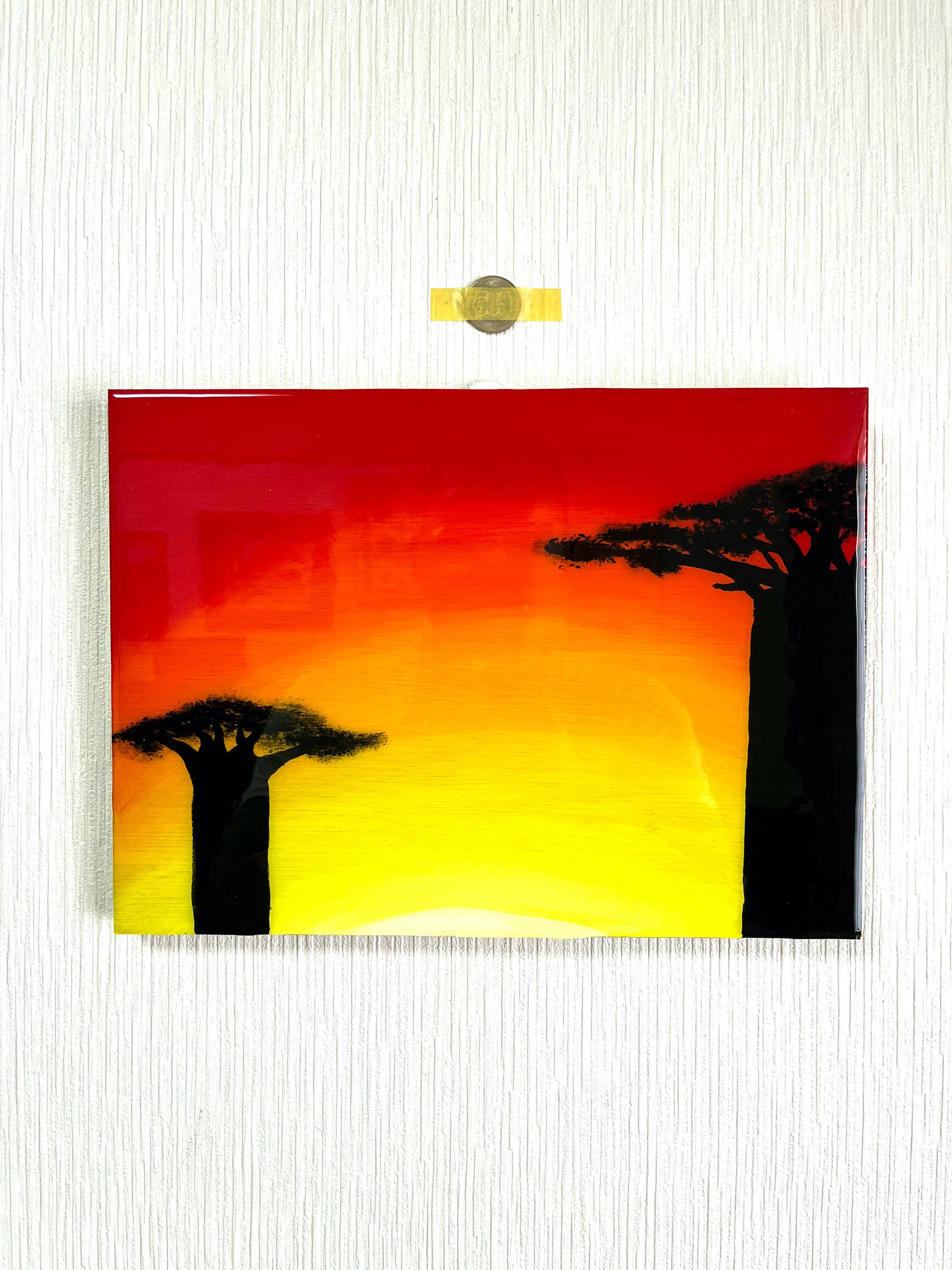 レジン絵画:バオバブの夕暮れ:Baobab Sunset