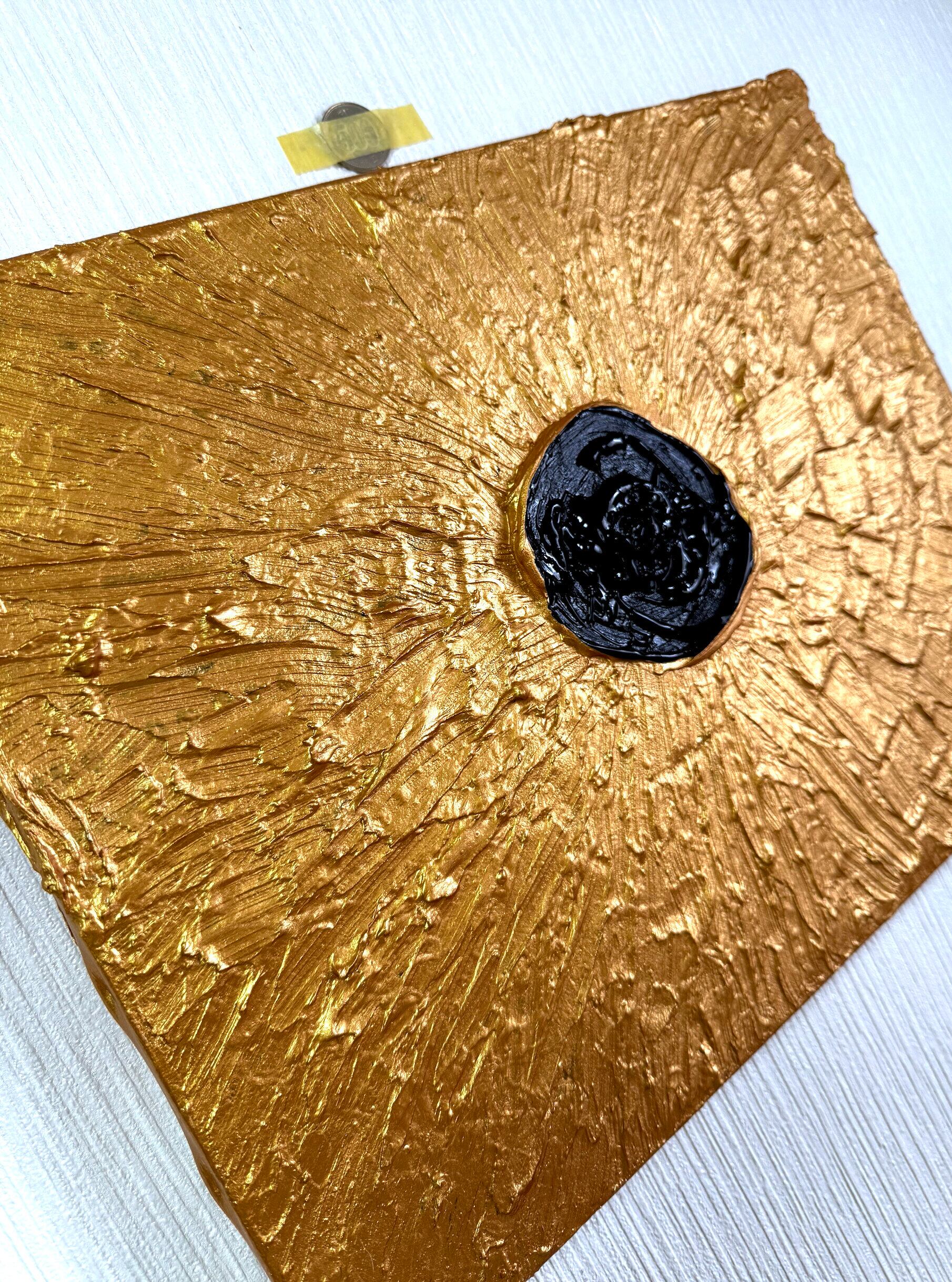 完全皆既月食をイメージしました。モニタリングペーストで絵画自体を琉球させ、複雑な太陽のフレアを表現しています。