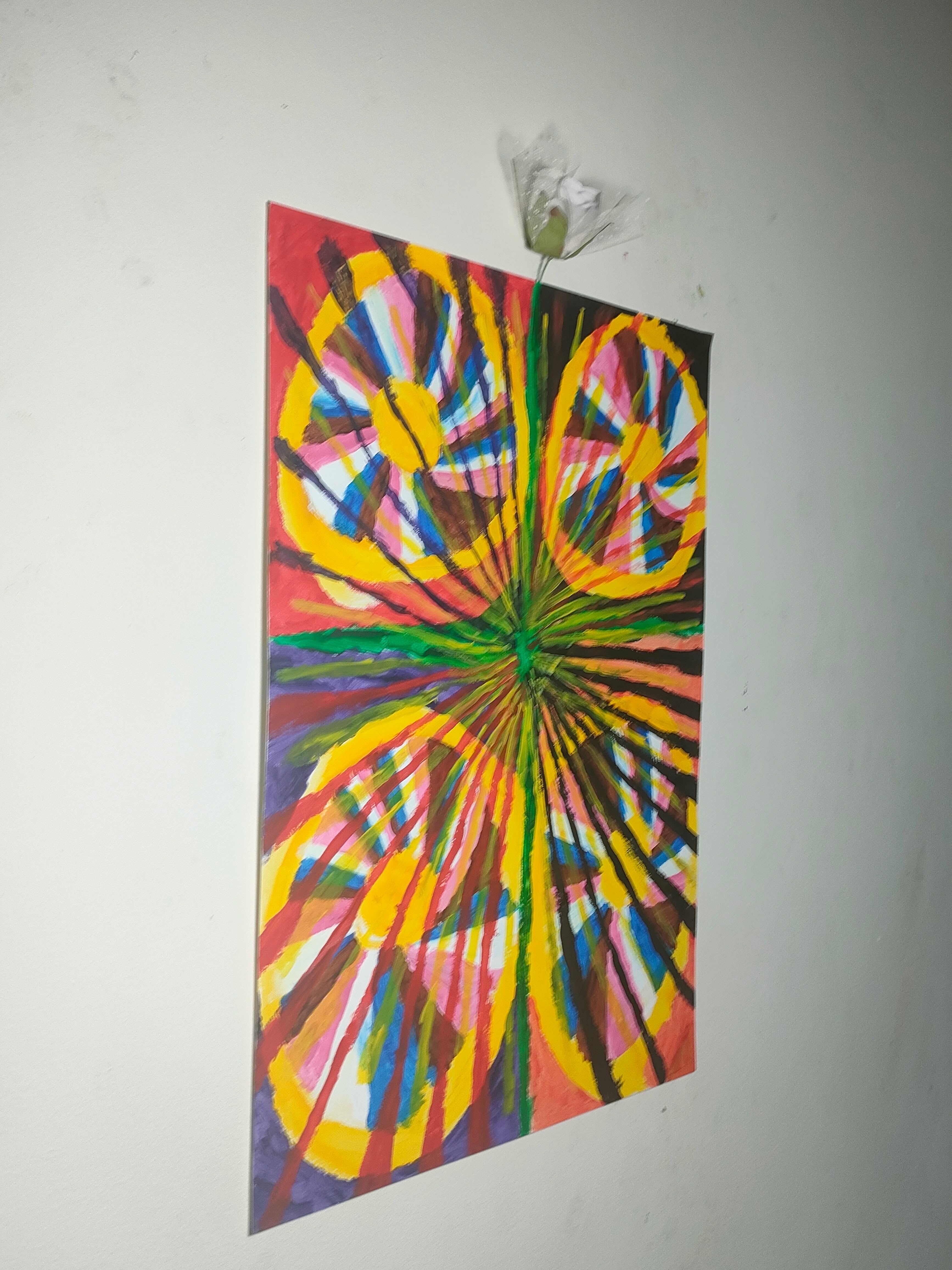This painting, which resembles a kaleidoscope, depicts multiple timelines and the state of transcending them.