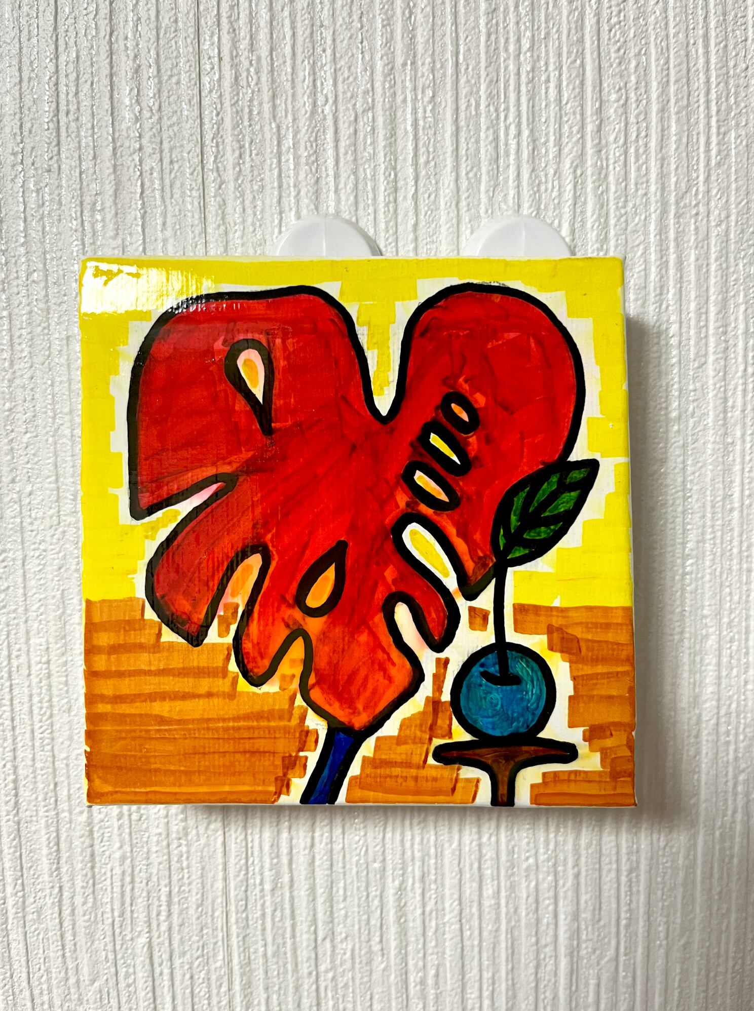 I really like Monstera. A mysterious plant with holes. Leaves spread randomly in all directions. I also thought how wonderful it would be if these children were dyed red, so I drew them. Next to it was a cherry that cured diseases. I am worried along with the painting. I hope it doesn't get any worse.